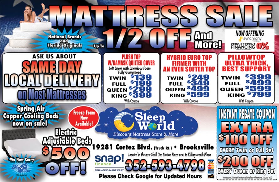 Since 1986, our family has worked to provide affordable mattresses and beds to customers throughout Florida. Since that time, we have opened a Sleep World store in our own neighborhood, right here in Brooksville! This new store has become a favorite destination for customers looking to improve their sleep and save money on high-quality mattresses and beds. Our mattress store in Brooksville offers the best value for mattresses and bedding of all kinds.